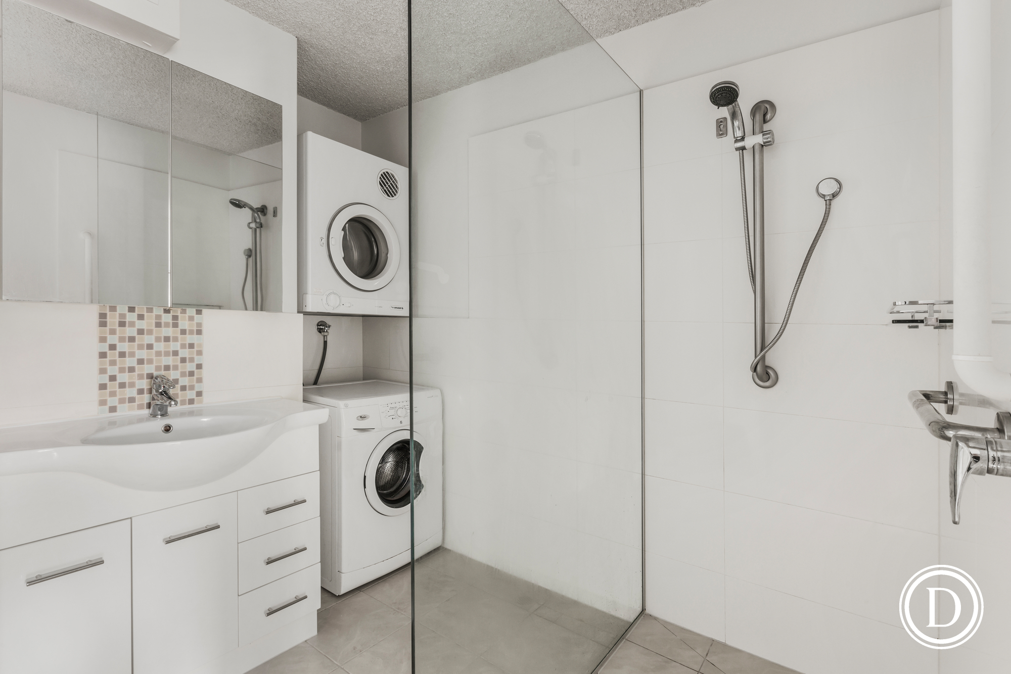 The double bedroom features BIRs and quality renovated fully tiled bathroom with dual access. Modern walk-in shower and laundry space.