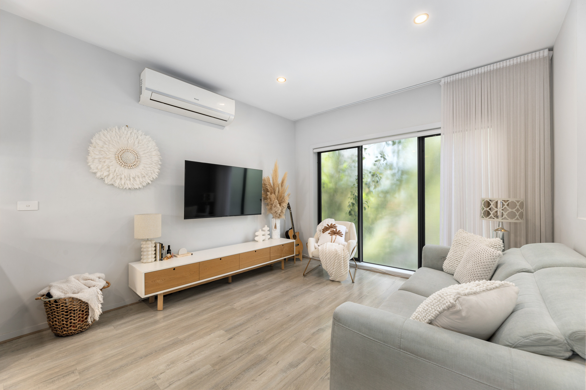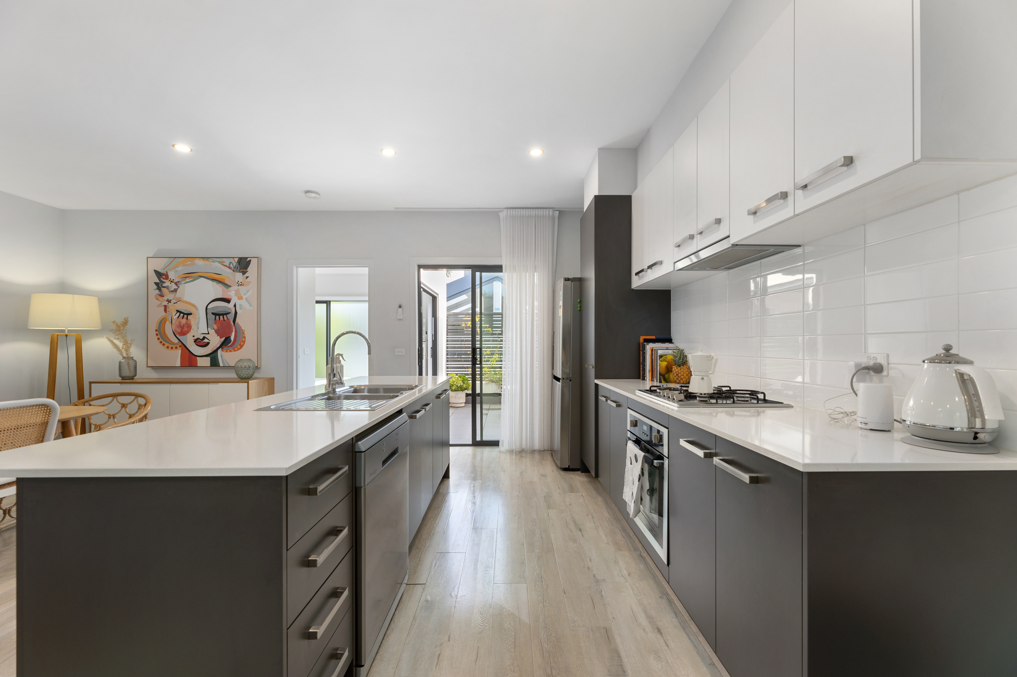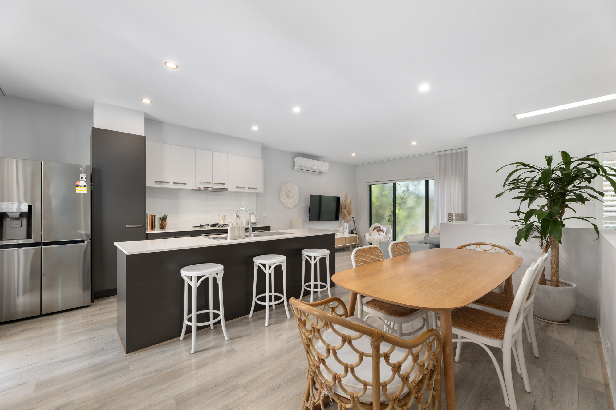 The well-appointed kitchen offers ample storage and bench space, while thoughtful design ensures practicality throughout. The light-filled open-plan living and dining area flows seamlessly onto the upper-level balcony, the perfect setting for outdoor entertaining, relaxing, or enjoying your morning coffee in a private retreat.
