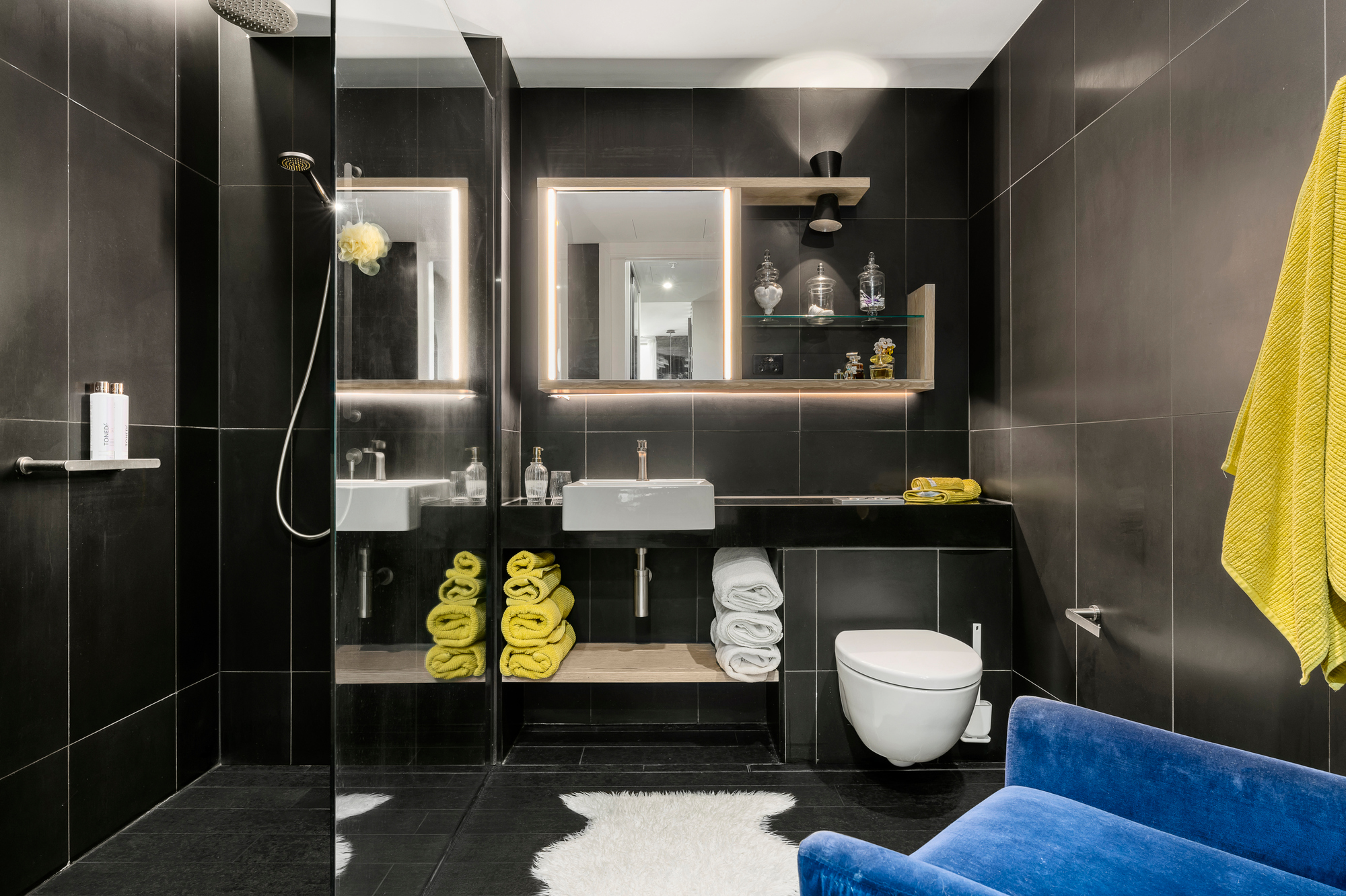 Both bedrooms are super-sized, with the master well equipped to take a King-sized bed should you desire, Super Tuft 100% wool carpets on Airstep underlay, built-in wardrobes, and the master leading onto a huge Noir Granite bathroom, with the second bedroom leading onto the entertaining balcony. A second Noir Granite bathroom with a dual-head rain shower completes the picture.