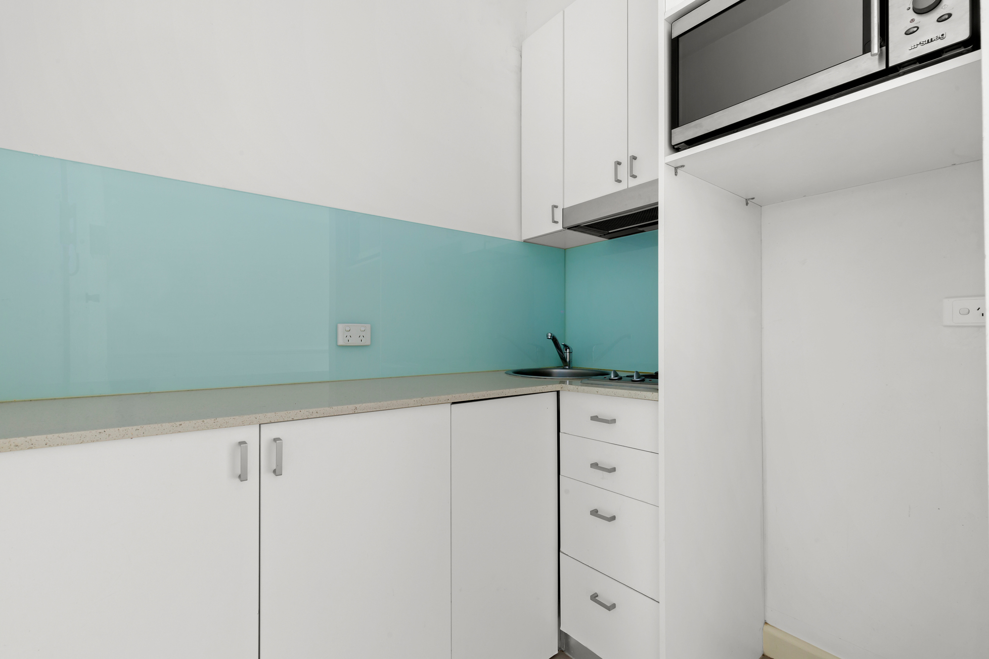 Simple and smart, the open plan studio is flexible allowing you to set up a number of ways to prioritise living or bedroom space as desired. The preferred layout in the block offers the option to use the window as a bedroom or dining nook and the kitchenette is in its own separate space, a welcome design choice. Air conditioned for year round comfort featuring a large inviting window with glimpses of the city to the west allowing sunny afternoons. Completing the picture is a spacious bathroom that offers a large shower and separate toilet.