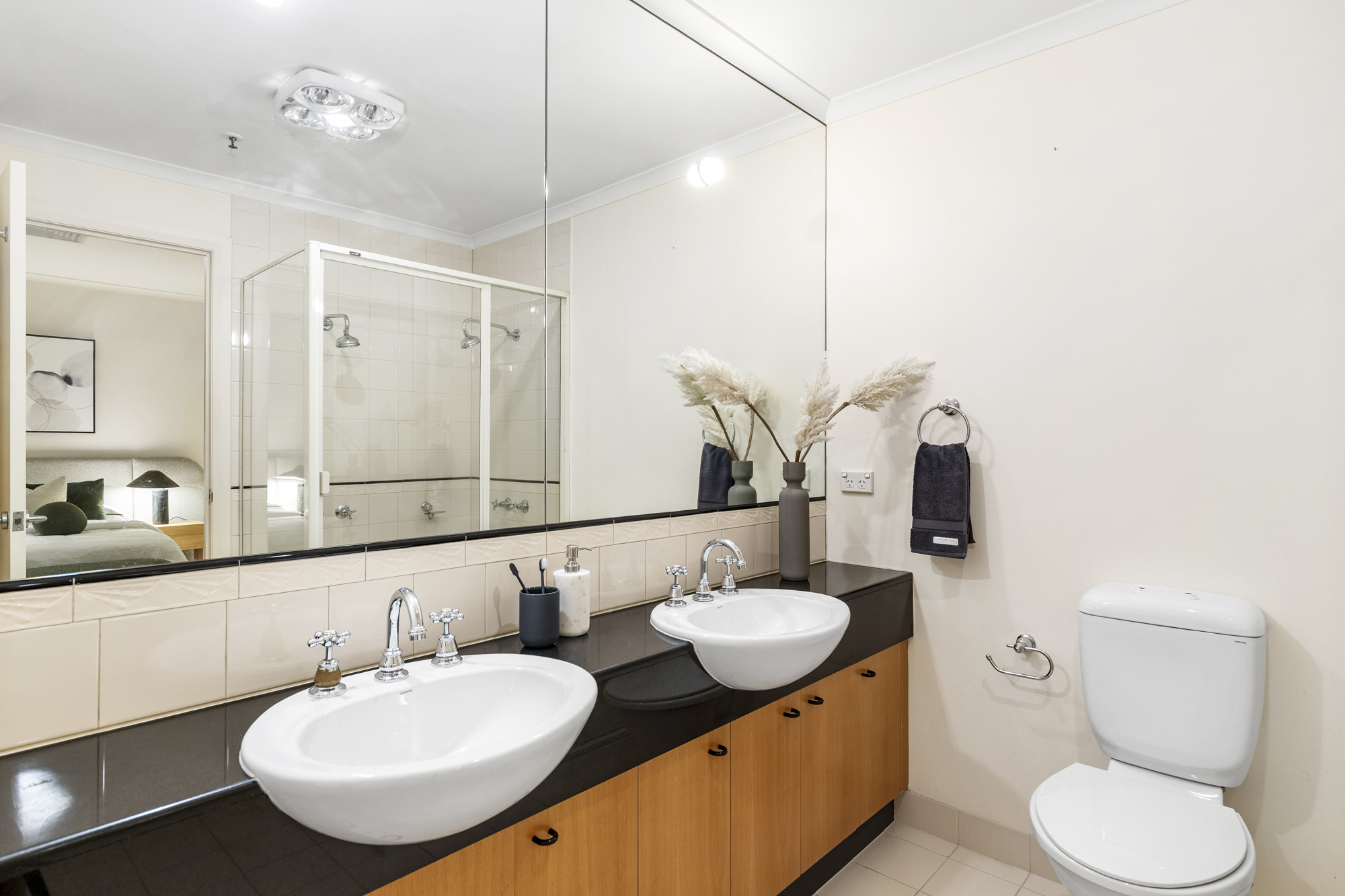 Inside, accommodation is thoughtfully zoned for comfort and privacy. The generous main bedroom enjoys ensuite access to main bathroom and walk-in robe, while second bedroom also enjoys its own ensuite bathroom with spa-bath and walk-in robe. The third corner room aides itself seamlessly to a third bedroom or home office. Downstairs a separate powder room is ideal for guests, while the kitchen is well-appointed with quality appliances and ample storage, perfectly positioned to anchor both everyday living and entertaining.