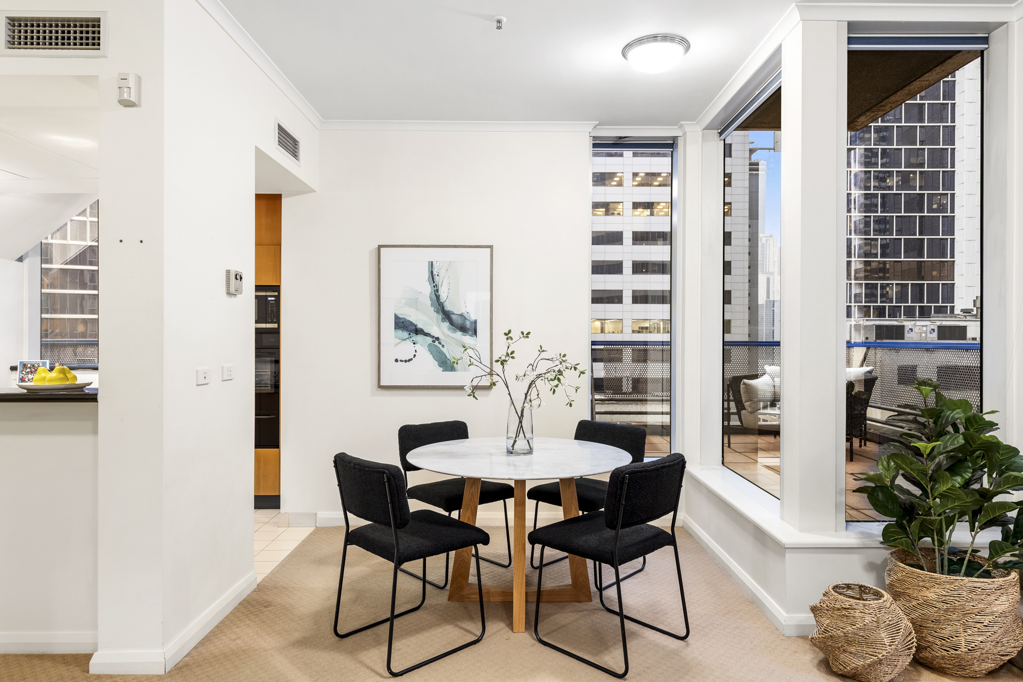 Occupying the prized top-floor position, the home unfolds with generous open-plan living and dining areas that connect seamlessly to an expansive wrap-around terrace. This impressive outdoor space creates a natural extension of the interior, inviting effortless entertaining, relaxed alfresco dining and quiet moments overlooking the rhythm of the city below.