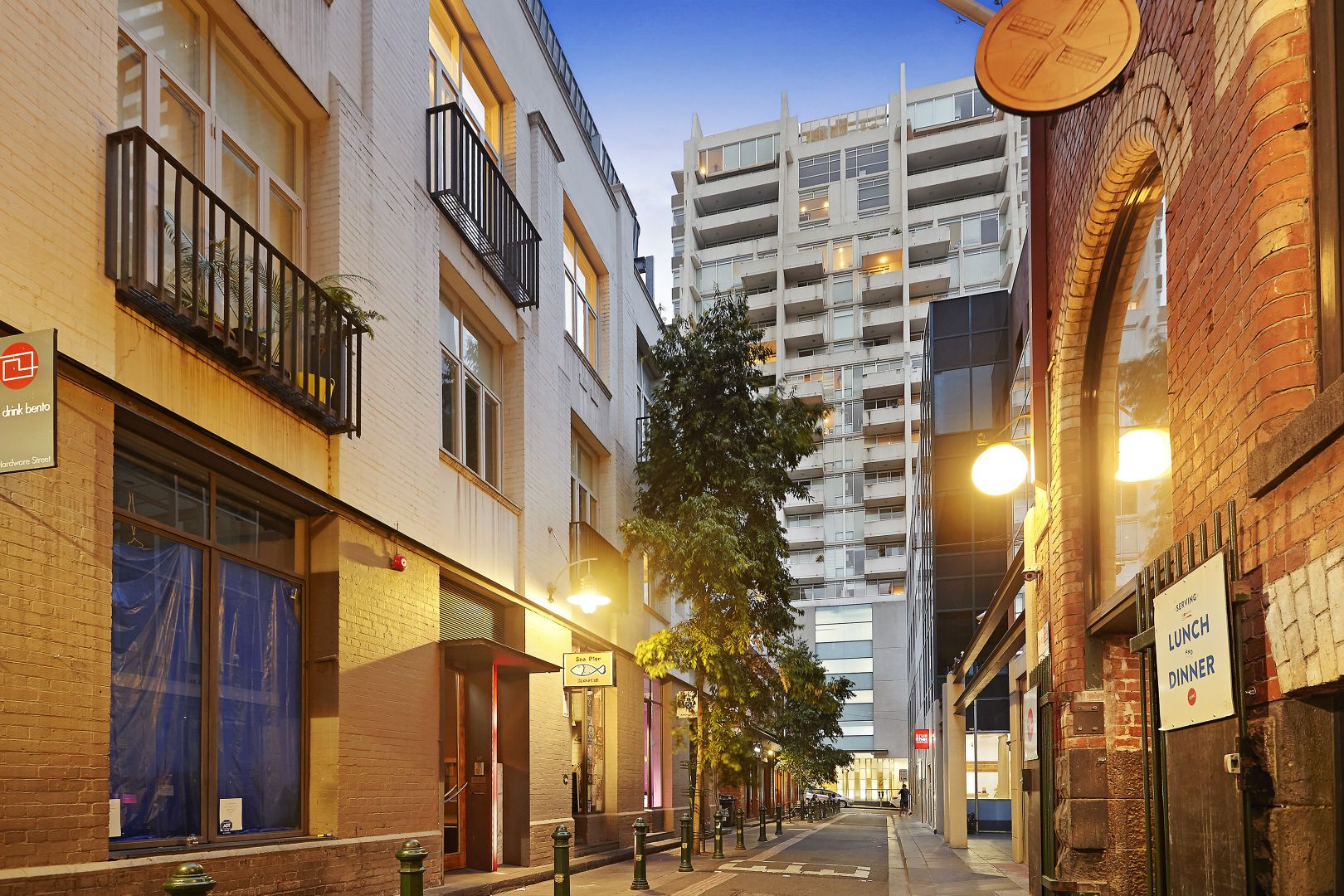 Perched high above laneways and flanked by centuries of history this light and bright two bedroom apartment has a lot to offer, with an open plan living and dining area that opens onto a lovely covered terrace overlooking vibrant Hardware Street. The kitchen has gas cooking, quality stainless steel appliances, plenty of bench and cupboard space too. Two full bathrooms and a private outdoor terrace, ducted heating and cooling and a secure car park on title, this not only ticks all the boxes, but is a real city home.