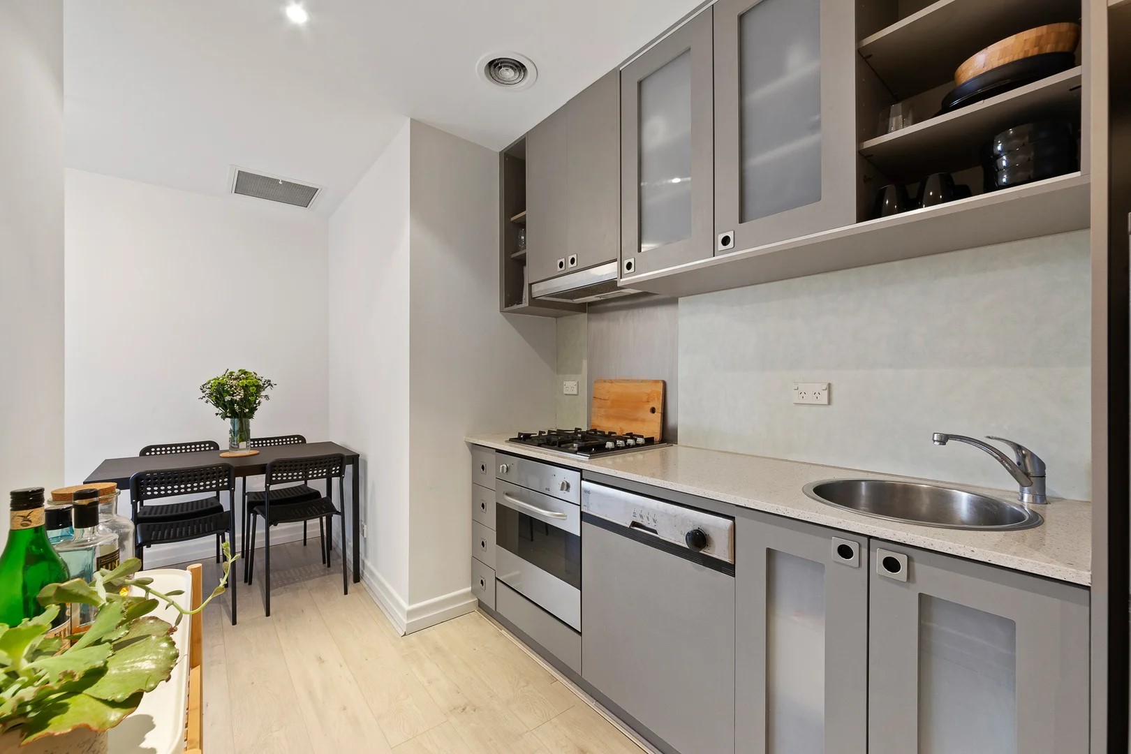 Located high on the 19th floor, this beautiful one-bedroom apartment showcases high ceilings and breathtaking city views, complete with glowing sunsets and sparkling skyline lights by night. The well-designed floor plan offers a separate dining area, enhancing both comfort and functionality. A stylish stone kitchen with stainless steel appliances and gas cooking delivers both quality and practicality.