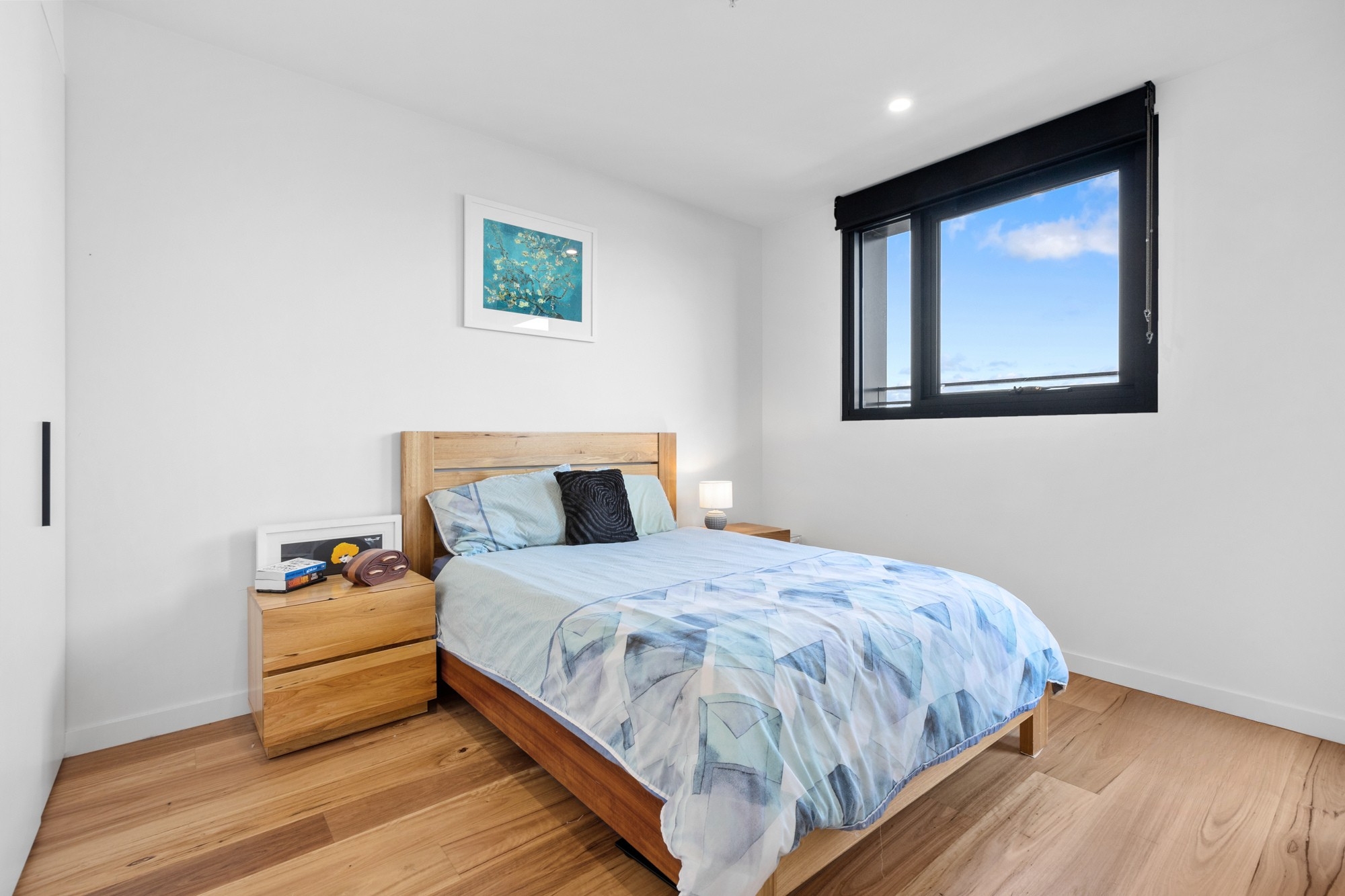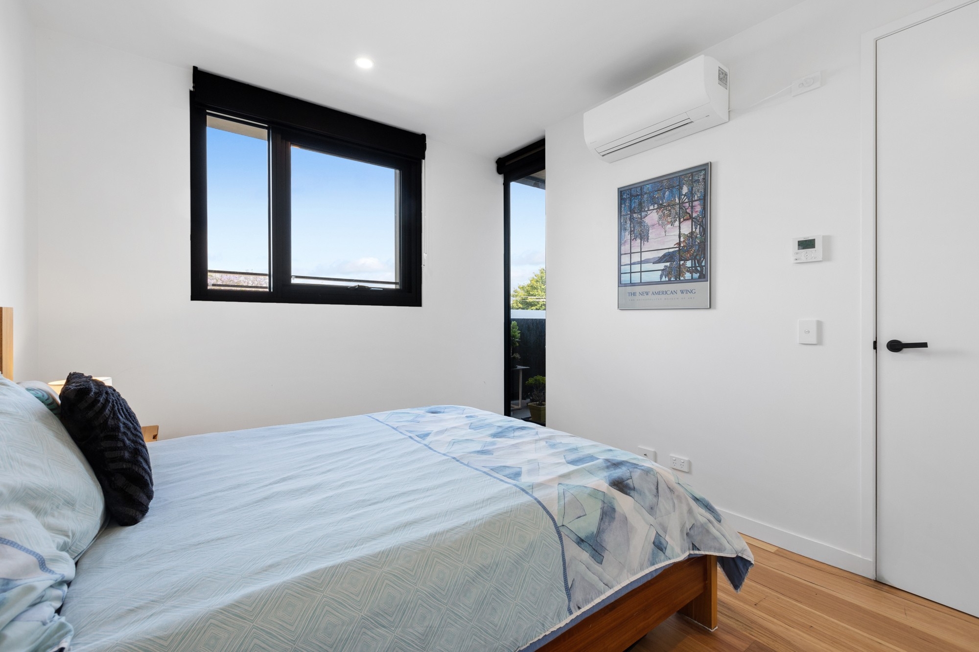 • A spacious bedroom with floorboards, built-in robes, and its own split-system air conditioning.