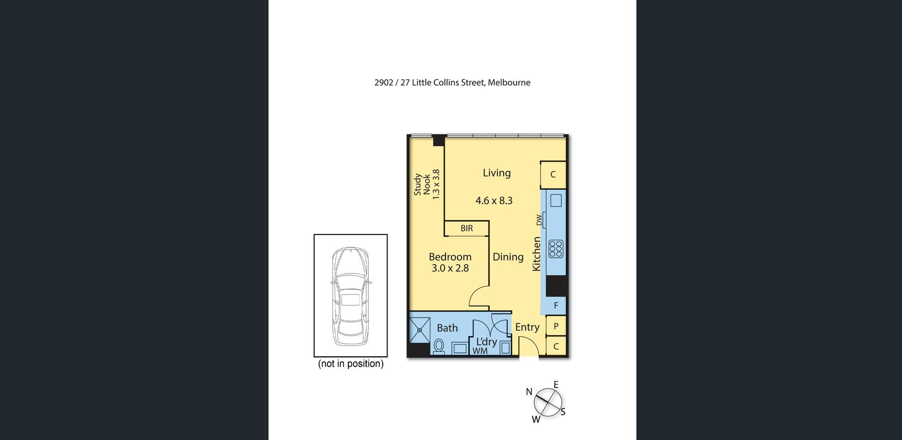 The generous sized bedroom features built in robes, and study alcove. Gorgeous central bathroom, European laundry, ducted heating and cooling, plenty of cupboard space, high ceilings, video intercom entry and a secure car space on title.
