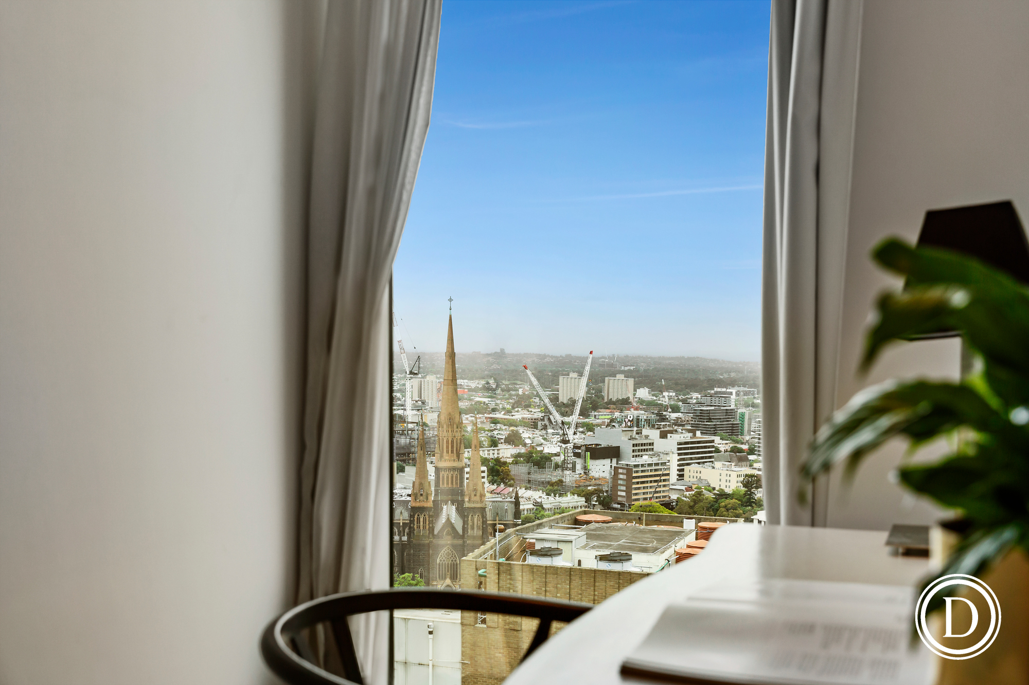 This luxury one bedroom apartment with its easterly aspect boasting wonderful St. Patricks Cathedral, the Treasury building and Treasury gardens aspect. Located on the 29th floor of the private residences of the Sheraton Hotel that is perfectly positioned at the top end of town, moment’s from Spring Street, Treasury & Fitzroy Gardens, the Theatre District, cafes, boutique restaurants and shops.