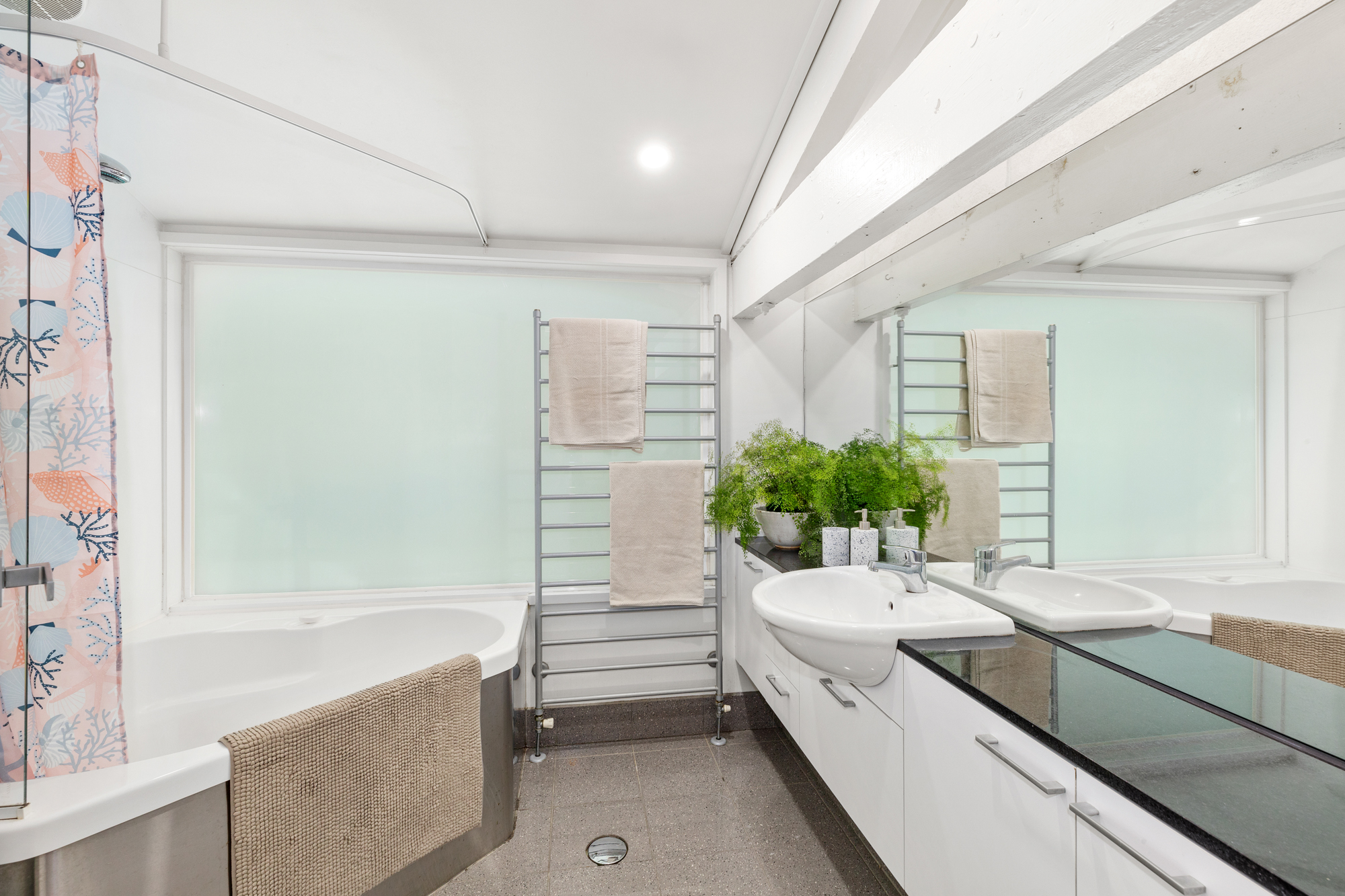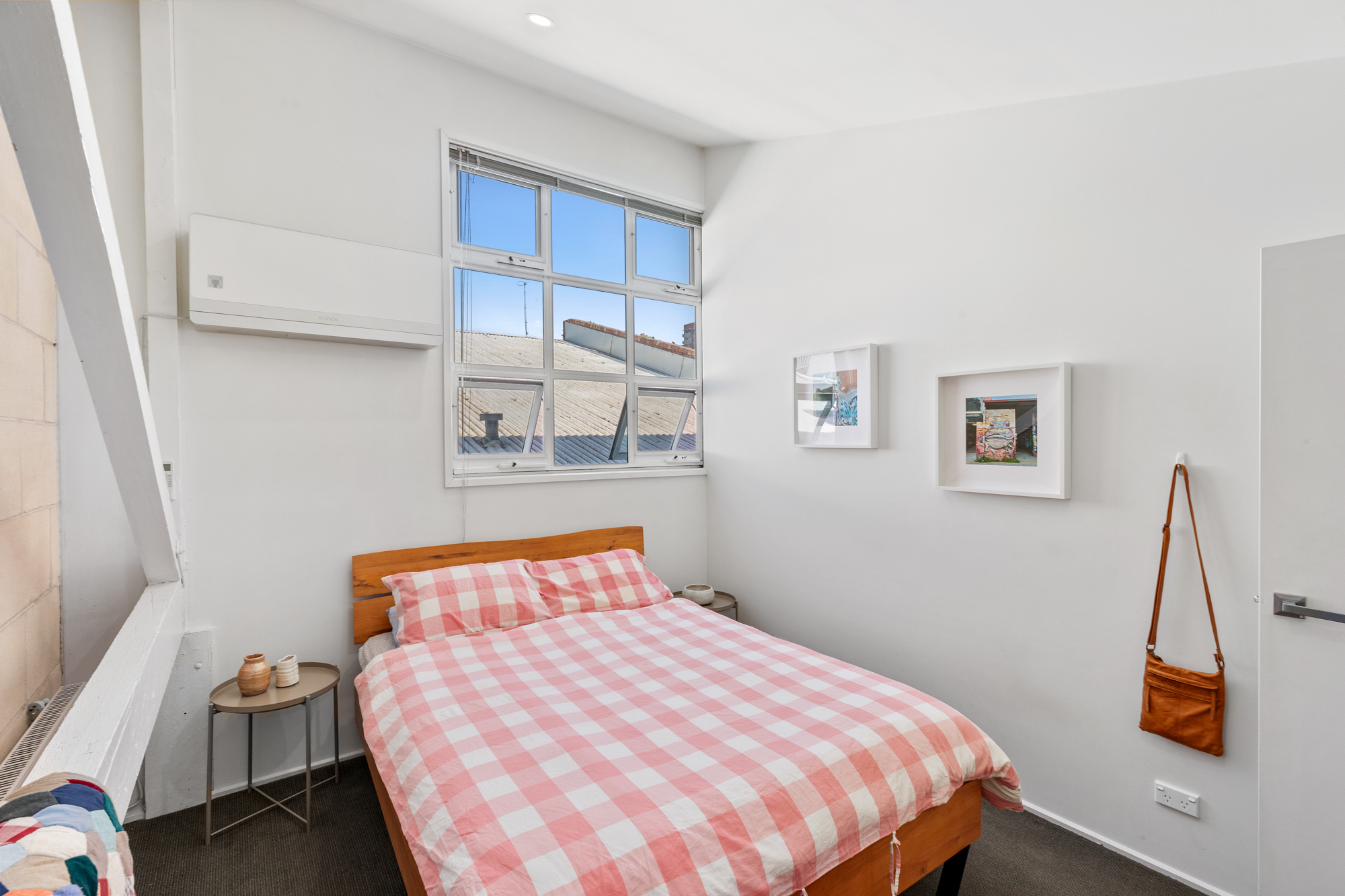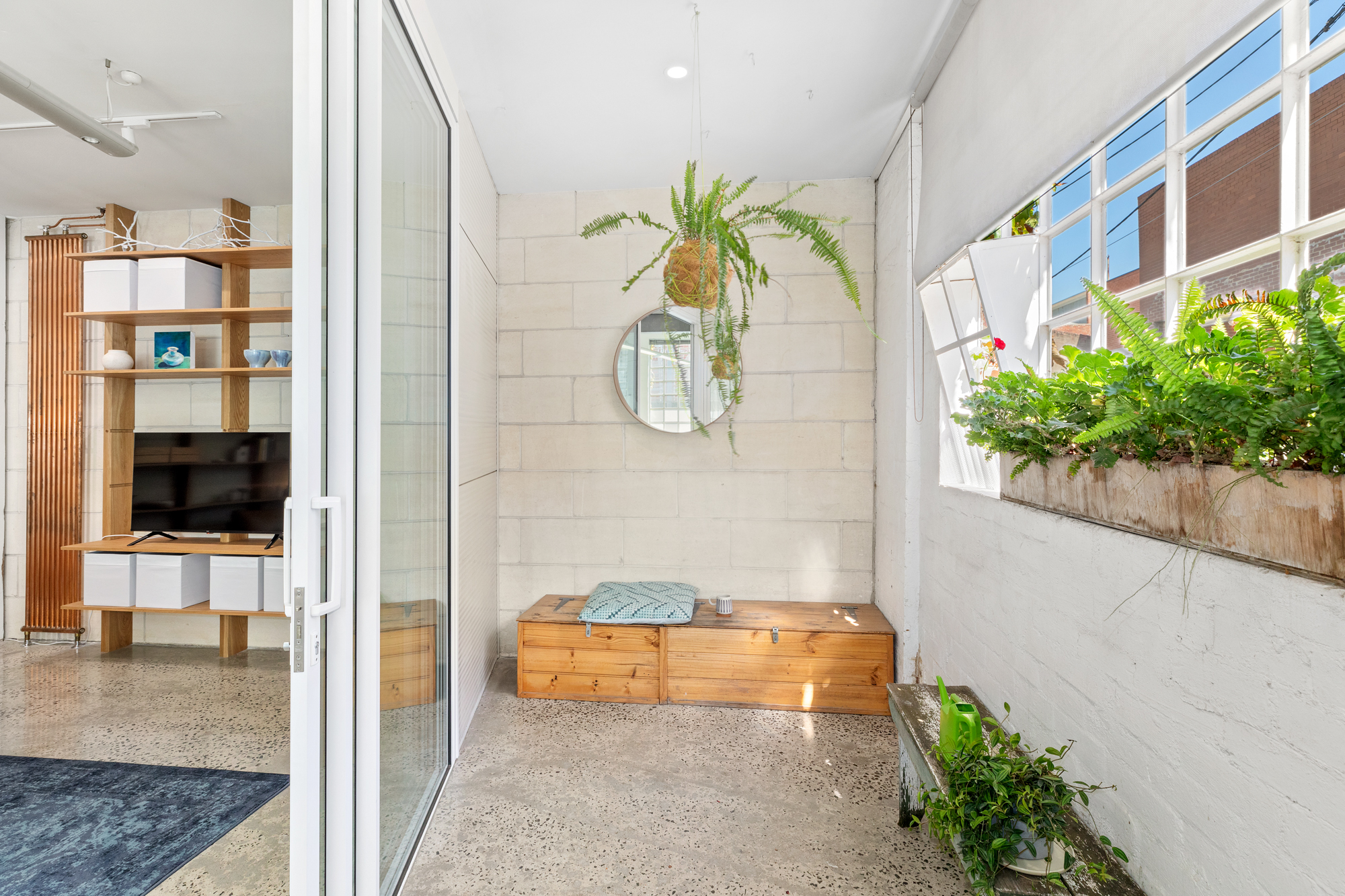 Recently refurbished to exacting standards this property stuns with polished concrete floors, custom oak shelving and tailored double-glazed sliding doors creating the ultimate indoor-outdoor living zone. Retaining elements of the former textile factory - deep North-facing windows, soaring ceilings and roof trusses - this ultra-stylish property opens from a private courtyard to expansive living and dining zones separated by a well-equipped kitchen with granite benchtops, premium appliances including gas cooking and dishwasher, and concealed laundry fitted with washing machine and dryer. Limestone walls and vertical copper hydronic heating units enhance the appeal of this dramatic space. Timber stairs ascend to two large bedrooms - second bedroom mezzanine-style, the perfect home office- both with external windows and timber BIRs, plus a smart bathroom with shower-over-bath.