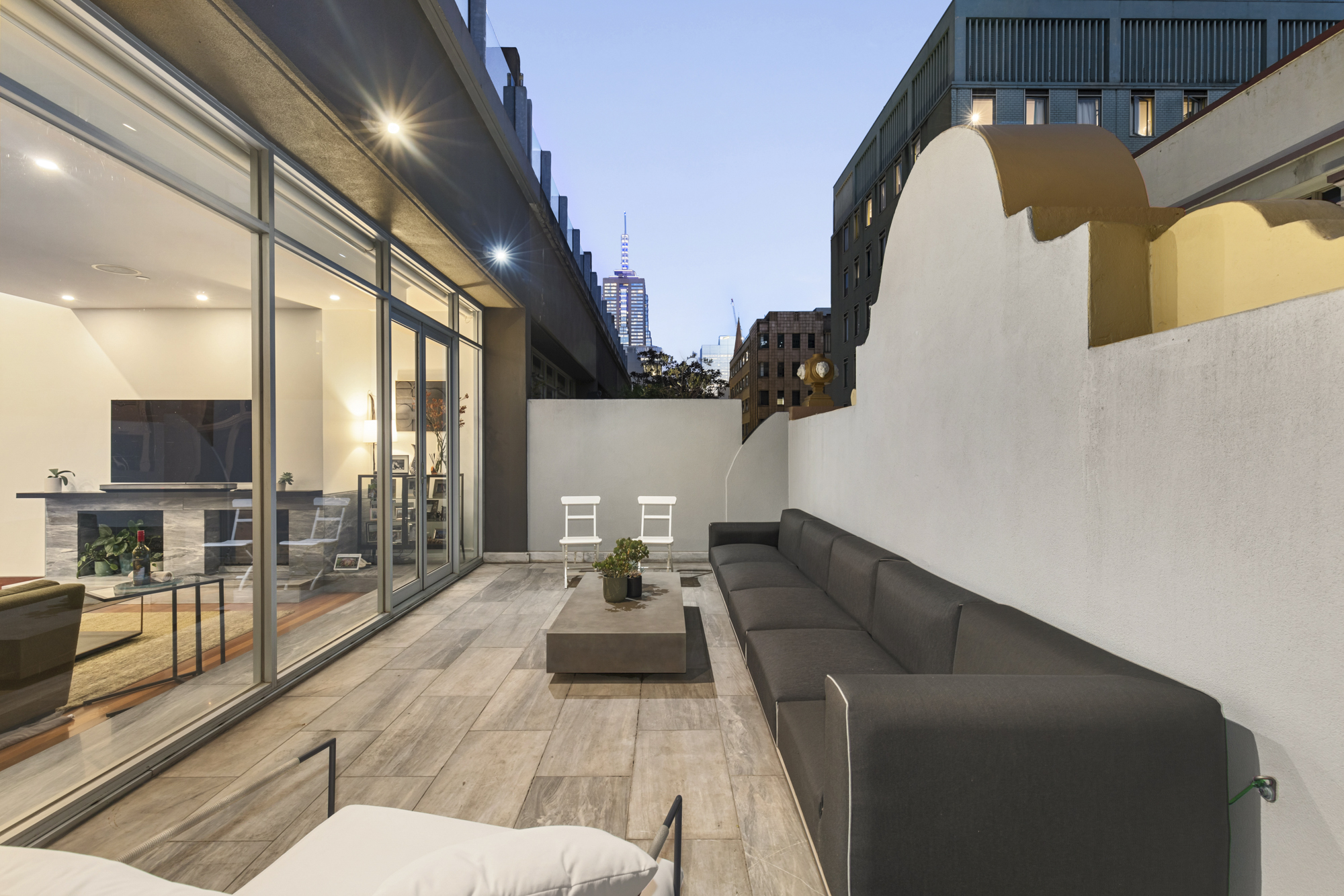 Crowning the residence is an impressive terrace featuring a radiant 7-metre pool (approx.) and expansive deck, offering all-day sun and breath-taking views across Melbourne’s heritage skyline.