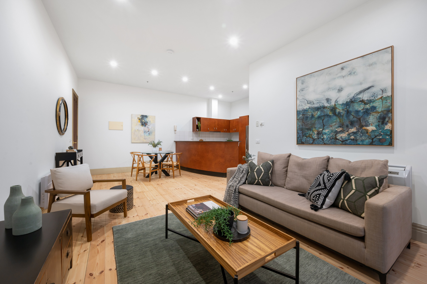 Set back in a privileged position from Flinders Lane within the C1860 Italian Renaissance style Building, this dwelling is perched high sitting over the gorgeous and quaint Manchester Lane.