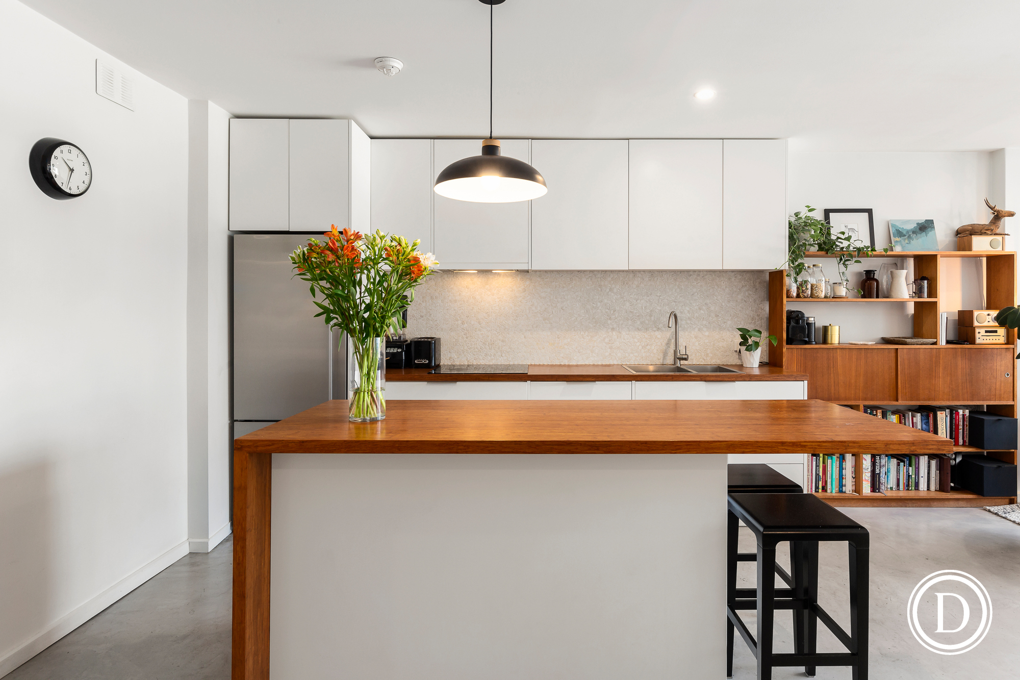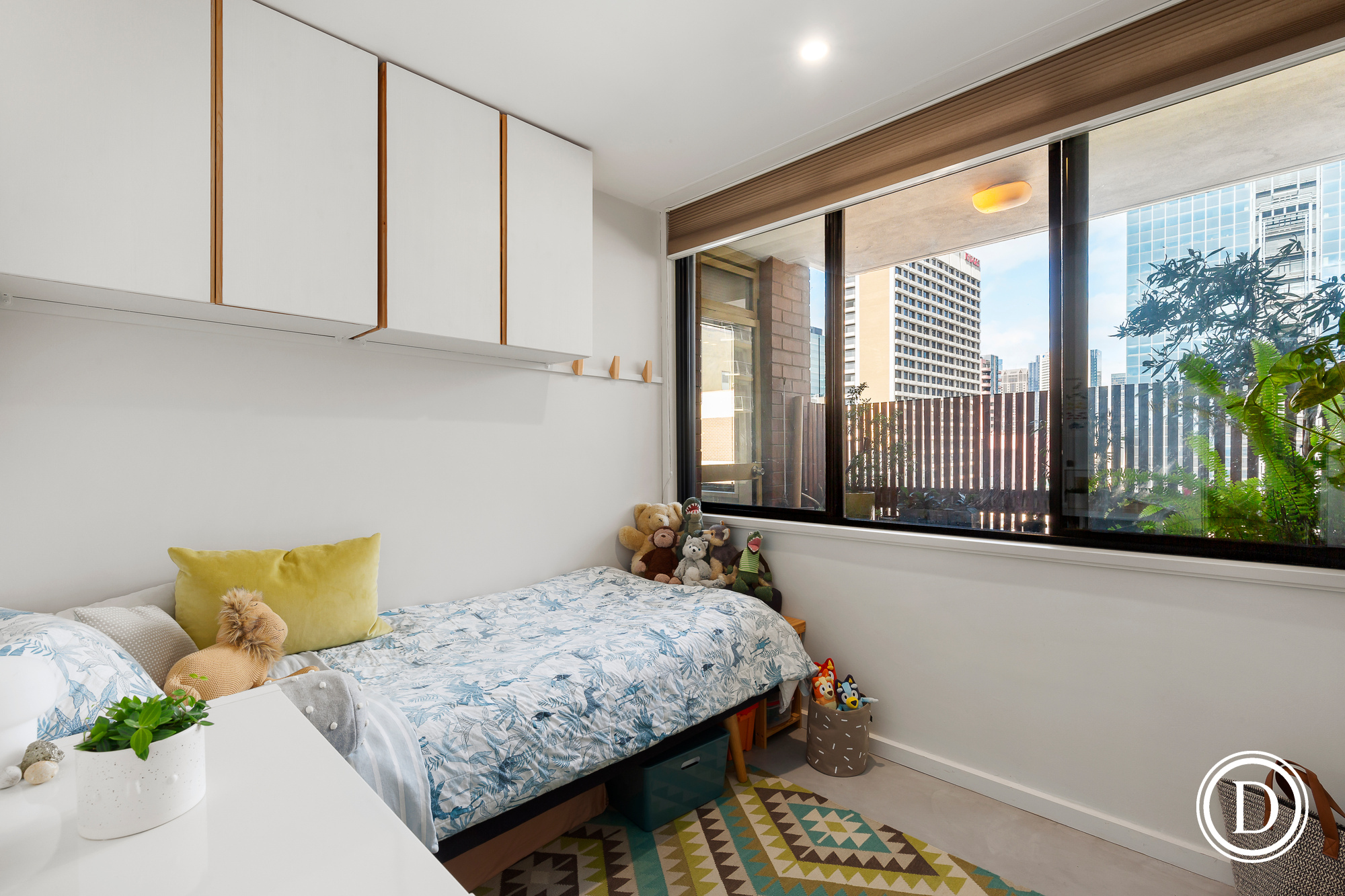 This lovely bright apartment has enjoyed a quality renovation throughout that will be sure to please. The fabulous designer chef’s kitchen with huge island bench and oodles of storage, Fisher and Paykel stainless steel appliances, dishwasher drawer, double sink, and induction cooktop. The stylish fully tiled bathroom and polished concrete is a real winner too. With its city orientation each window in the apartment enjoys the city twinkling skyline at night and the treed aspect to the heritage buildings beyond during the day. All windows are also double glazed for acoustic privacy and with polished concrete floors to the living area and a lovely private covered outdoor terrace.