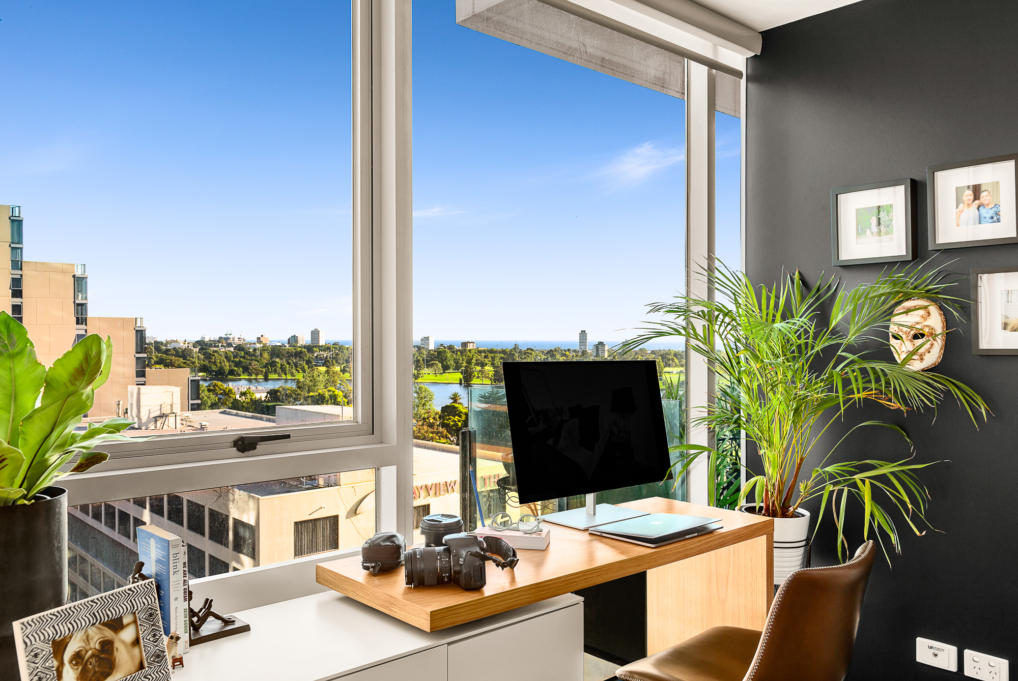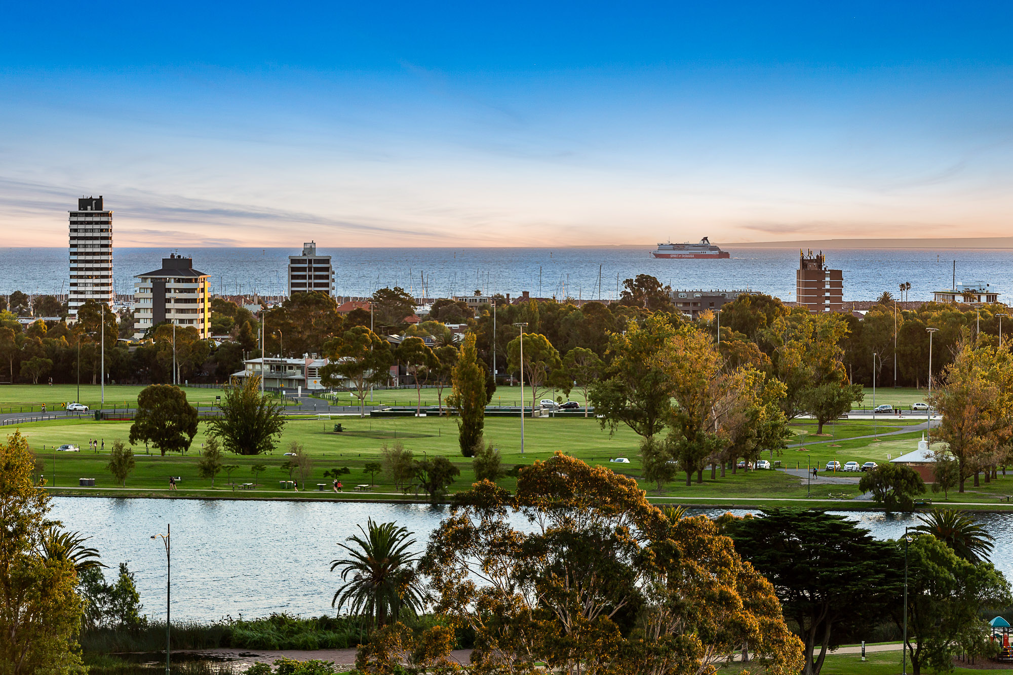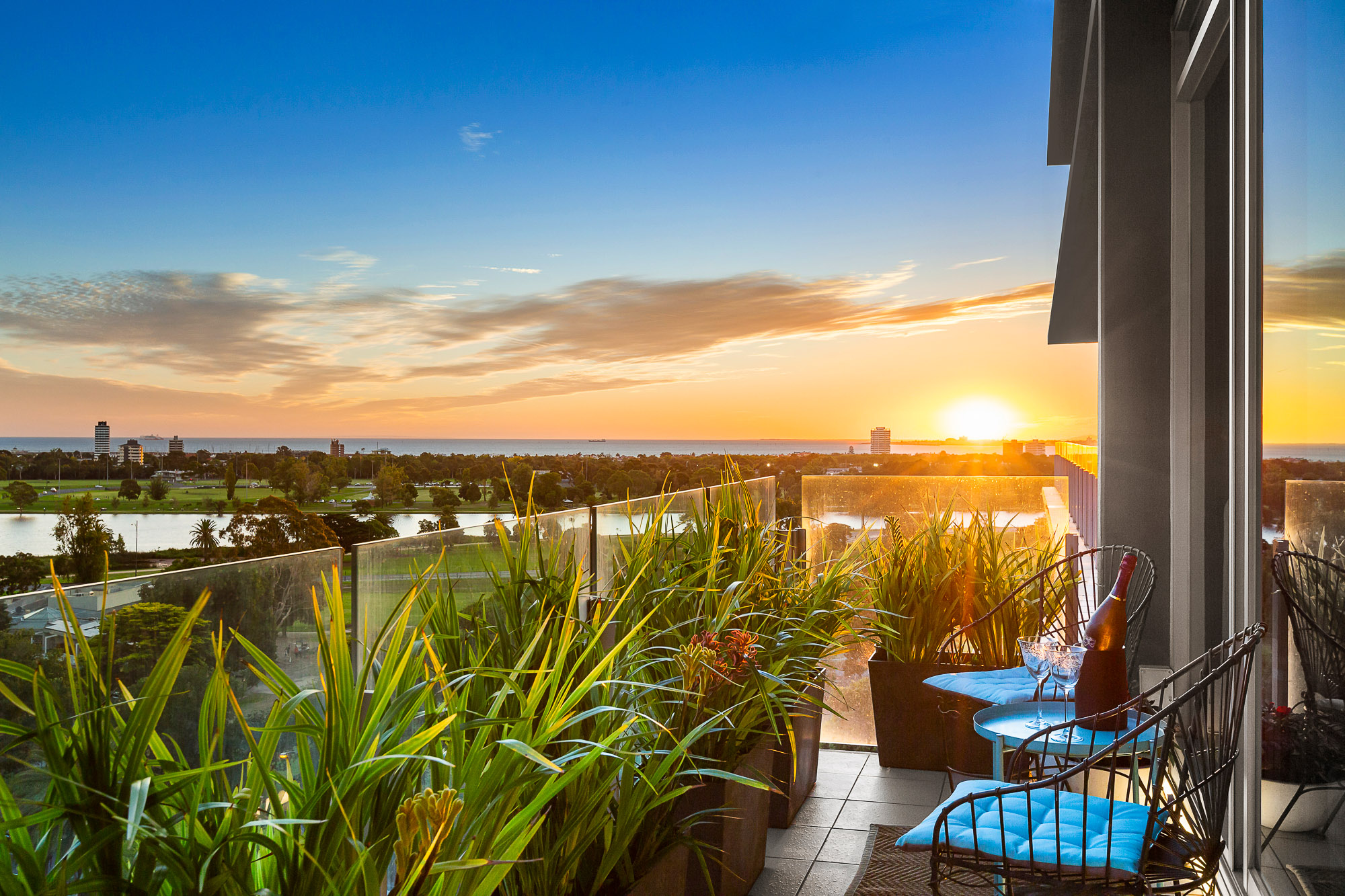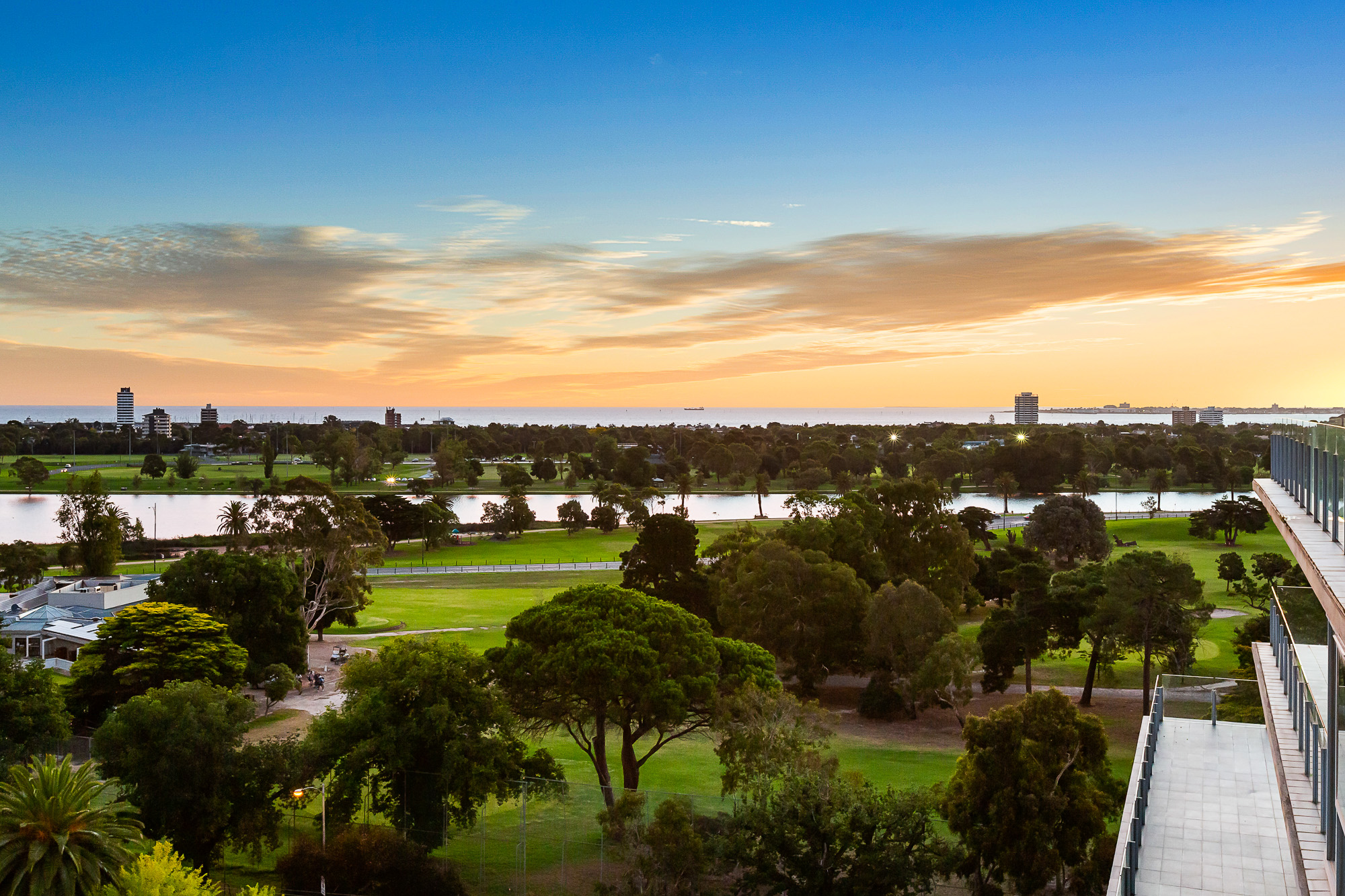 The outdoor terrace offers a perfect outdoor retreat for quiet contemplation or family meets. Providing inspiring uninterrupted views of Albert Park Lake, Port Phillip Bay and the Championship Albert Park golf course right across the road.