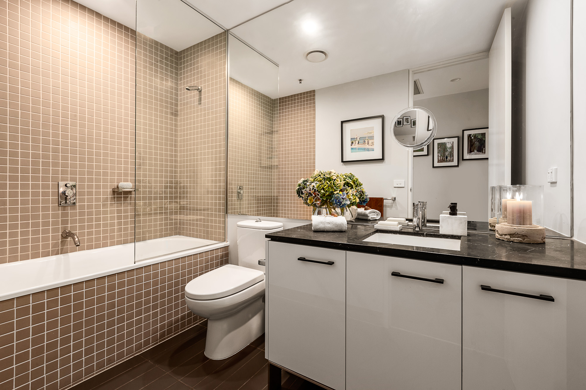 Comprising 2 well-proportioned bedrooms, each with built-in robes. Master with private balcony access and a stone and fully tiled ensuite. The main fully tiled and stone bathroom is a beauty with a bathtub too.