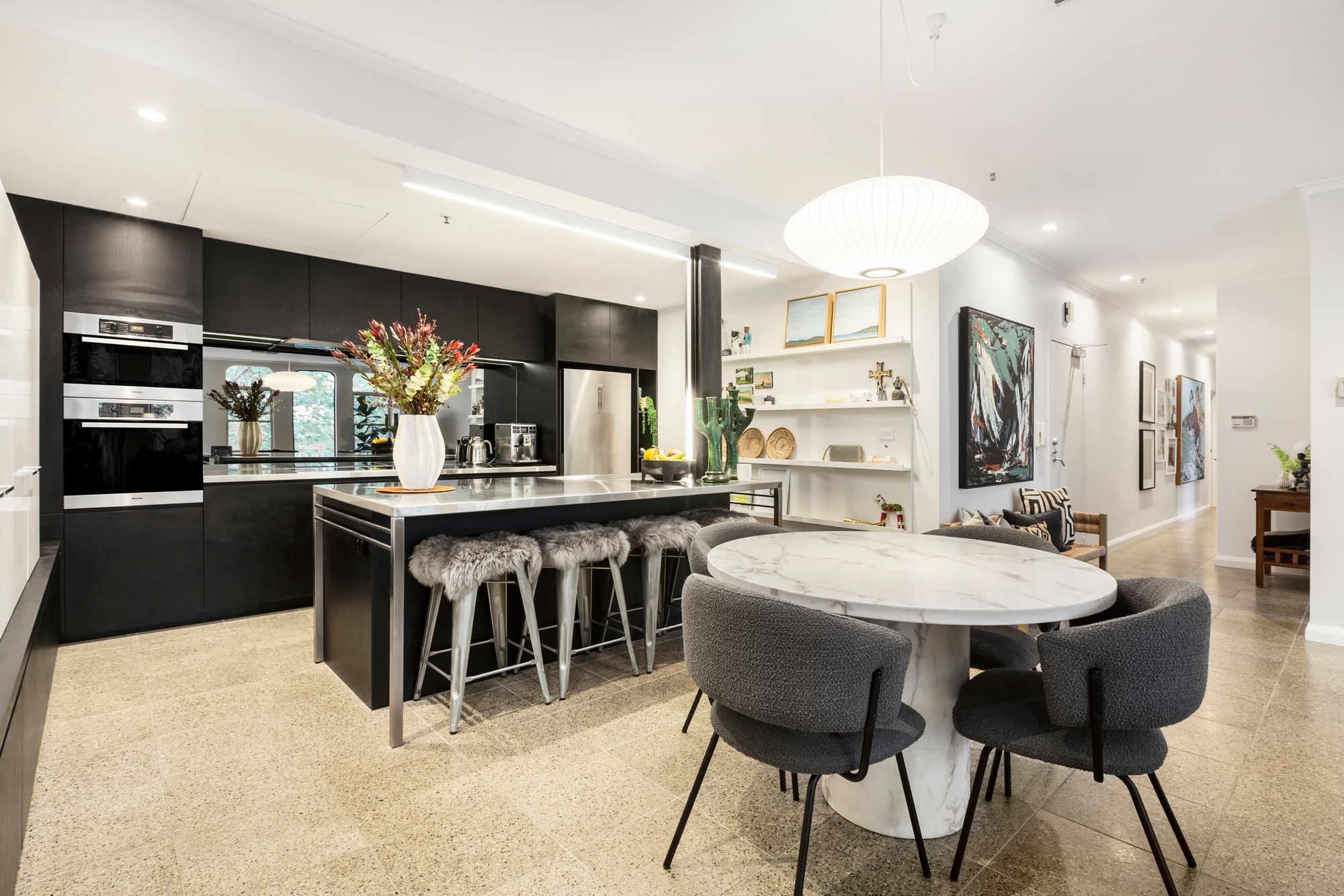 This enticing light-filled 4-bedroom residence of 175 m2 proudly sits right across the entire front of this 1968 building of 38 apartments only. Offering the leafy tree-level position that ensures the feel is lush, tranquil and serene from every room in this unique space. A truly bespoke residence, beautifully designed by Hunter and Richards Architects who created this thoughtful and sophisticated city home that is also a showcase gallery for your art collection and precious collection pieces.