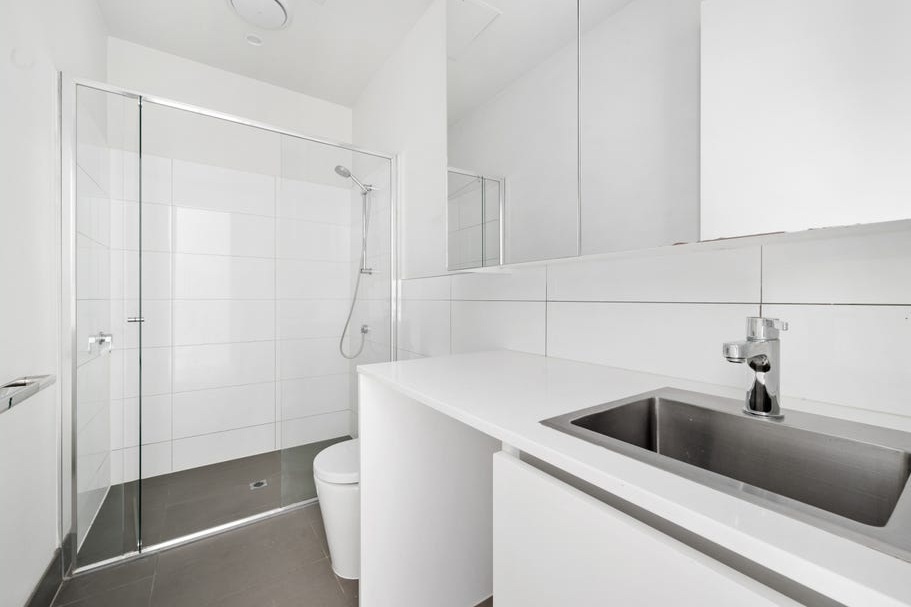 This apartment offers innovative design features paired with the finest quality materials.This modern abode comprises of a great-sized bedroom with mirrored BIRs. Timber floorboards throughout the large open-plan living and dining area makes the apartment feel fresh and light. The designer kitchen has electric cooking, polished bench-tops, a full sized dishwasher and loads of cupboard space.